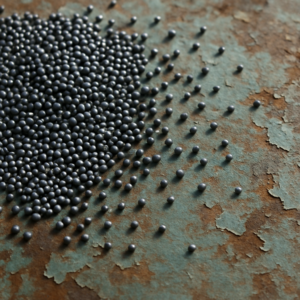 Сферическая форма снижает риск повреждения основы, а высокая твёрдость позволяет многократно использовать дробь. Плотность материала гарантирует достаточную кинетическую энергию при ударном воздействии.